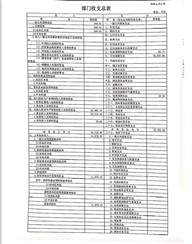一、部门收支总表
